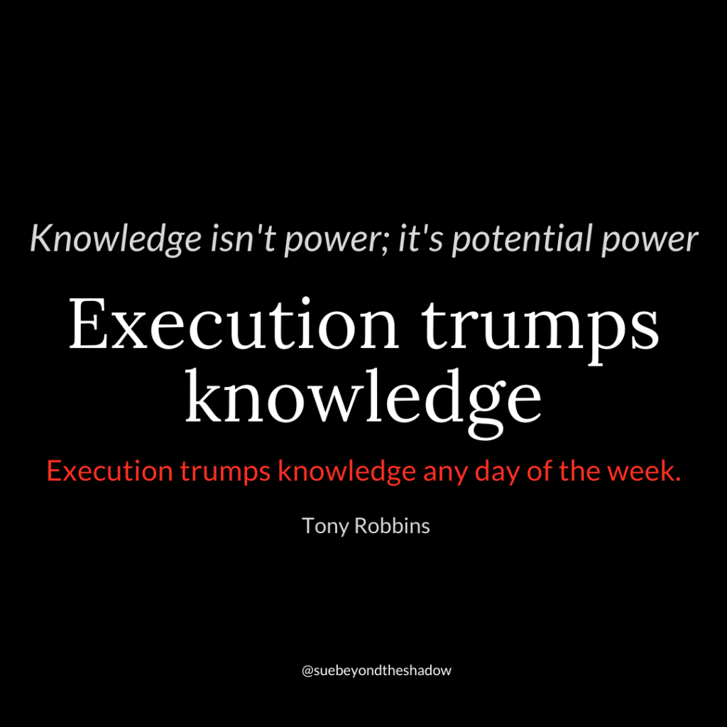 Knowledge is potential power. Executing trumps knowledge every time. Tony Robbins