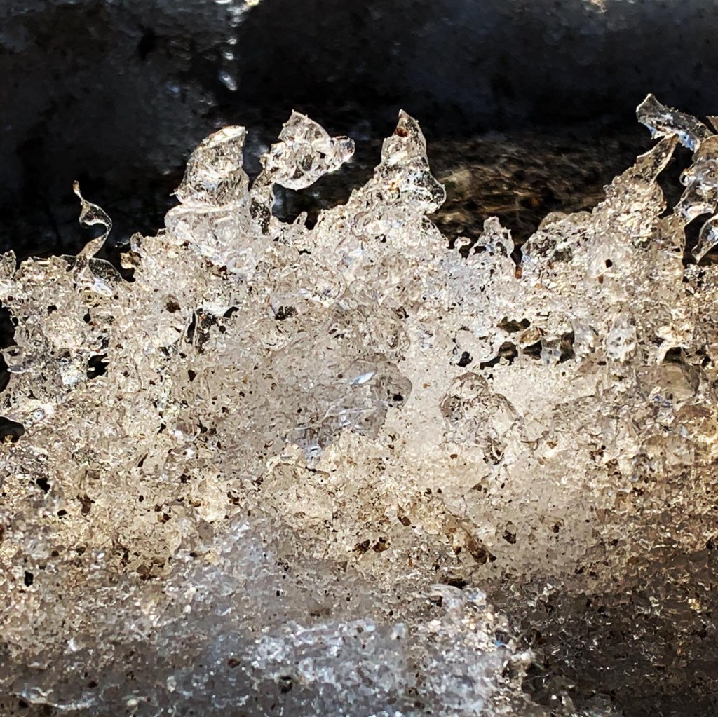Today I was walking my dog. It’s March. The dirty, half-melted snow at the side of the street caught my eye. I don’t like it when the snow gets dirty like that. It looks ugly. I normally walk right past. As I was walking today, I reminded myself to slow down and look closer. I’ve been practicing slowing down and paying attention, especially through the pandemic. Sometimes I remember. Often, I get caught up and forget. I started as a way to find things to be grateful for, but it has turned into much more than that. It is in slowing down and paying attention that we find the most amazing things. We find things to celebrate in our surroundings. We also find things to be proud of in ourselves.