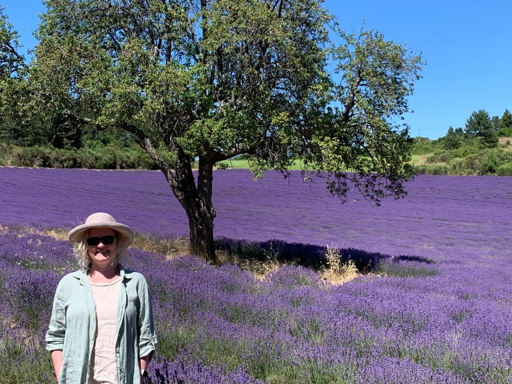 After all that, the stone house field was not quite what I had imagined. It was the middle of the day when we got there and very hot – 36 degrees. The house was quite a walk into the lavender fields. I started walking. The sun was so hot. The lavender was full of bees. I walked and walked. I got stung by a bee. I kept walking. Finally, I got to within sight of the stone house (which was hidden in a little dip). I saw it! I was surrounded by lavender and bees for as far as my eyes could see. It wasn’t quite what I had imagined – I felt dizzy from the heat, my stung leg was hurting. I couldn’t get a good photograph. Despite all that, it was remarkable to be in a sea of lavender and hear nothing but the bees. I’m so glad I did it! I know I wouldn’t have seen that stone house if Chris hadn’t kept encouraging me.